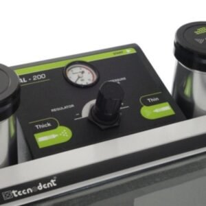 Cuenta con un regulador de aire y manómetro para modificar la presión de trabajo y filtro ciclónico incorporado para la eliminación de humedad y aceites en el aire de entrada.